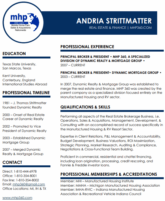 810-444-6978 EMAIL MHP 360 Andria Strittmatter, Principal Broker & President / CEO Eric Strittmatter Licensee / Consultant 810-444-6969 Bob Poirier Marketing Director 810-577-7878 Steven Freeman Office Assistant 713-706-0047 Bill Packer, Jr. Licensee / Consultant 248-720-8011 Tom Wall MHC & Dev Consultant 260-358-6517
